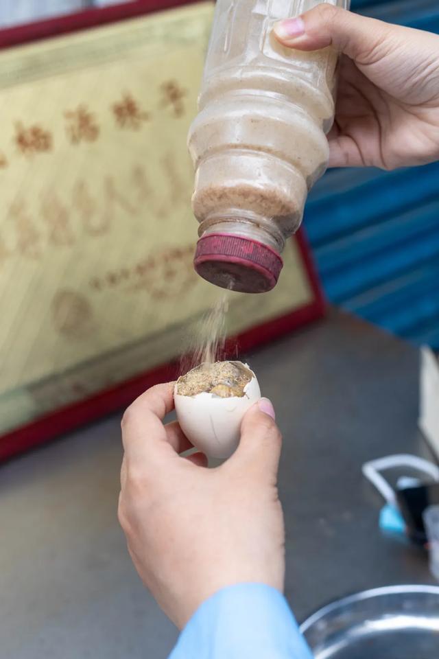 正确的吃法是:先敲开蛋的大头,吸尽里面的汤汁,再剥开蛋壳,蘸上椒盐或醋,慢慢咀嚼,才能体会到它的独特风味。