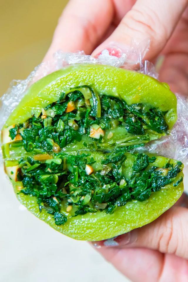 如果你喜欢马兰头,推荐你吃绿柳居的马兰头湘赣青团。看名字仿佛写着「南京限定」四个字,象征着春天的野菜剁碎,加入笋丁和香干丰富口感,一口吃掉芬芳清香。