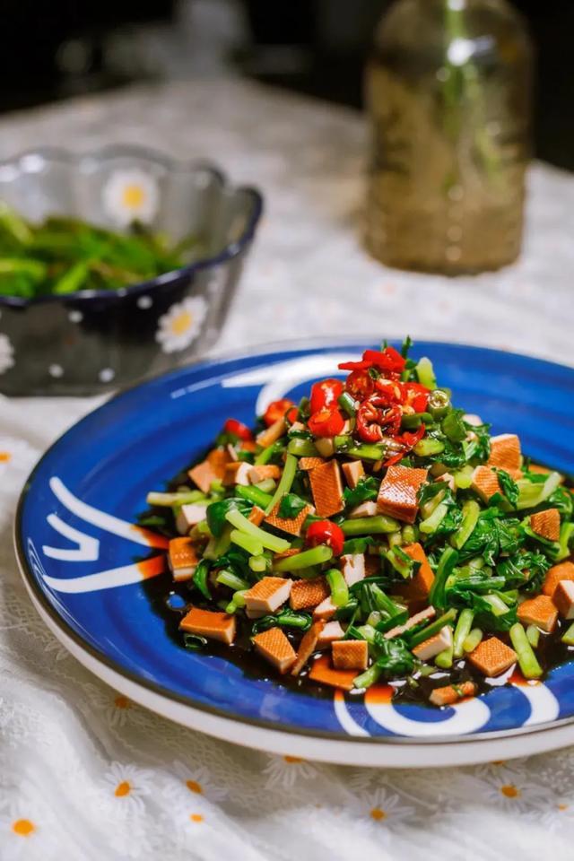 菌菌春天很爱吃马兰头香干花生凉拌,将马兰头焯水,挤干水分,切成小段,再加入香干丁、花生碎,淋上香油、盐、生抽,搅拌均匀,清爽开胃,口感丰富,是春天餐桌上的“解腻神器”。